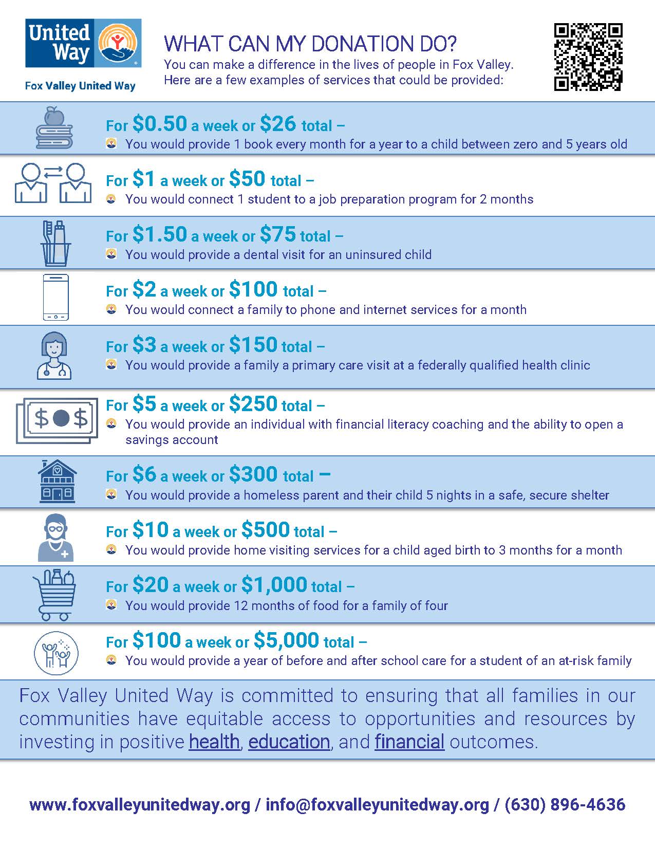 • Visit United Way’s website at www.foxvalleyunitedway.org